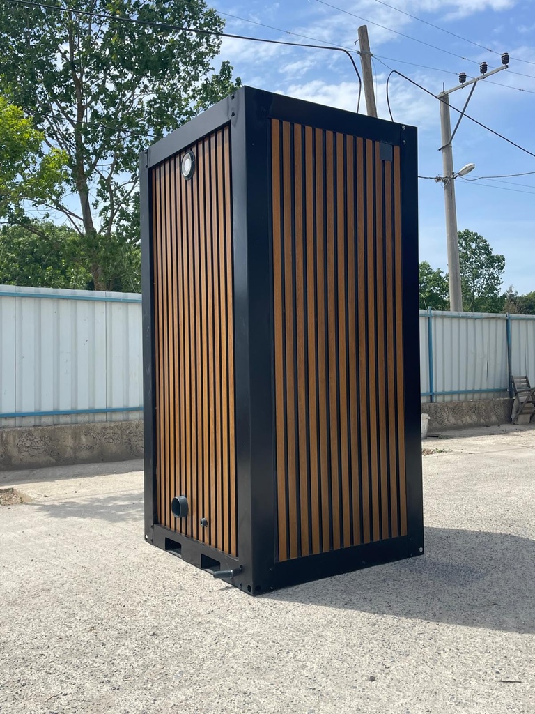 Deze compacte prefab mobiele toilet unit van 110 × 120 × 230 cm is volledig uitgerust, goed geïsoleerd en direct gebruiksklaar dankzij het plug & play ontwerp.